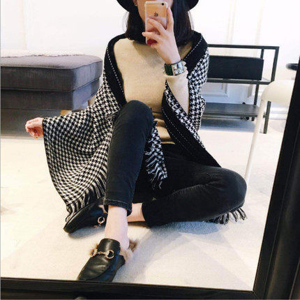 European and American double sided Inglo plaid scarf woman winter thickened long warm retro gibirge flow Suimitation cashmere shawl