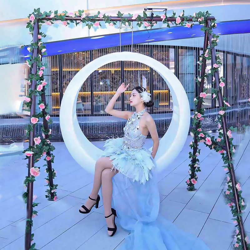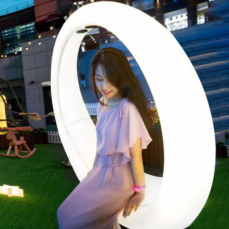 LED outdoor glow swing net red ins homestay outdoor crescent rocking chair solar courtyard multi-person moon hanging chair