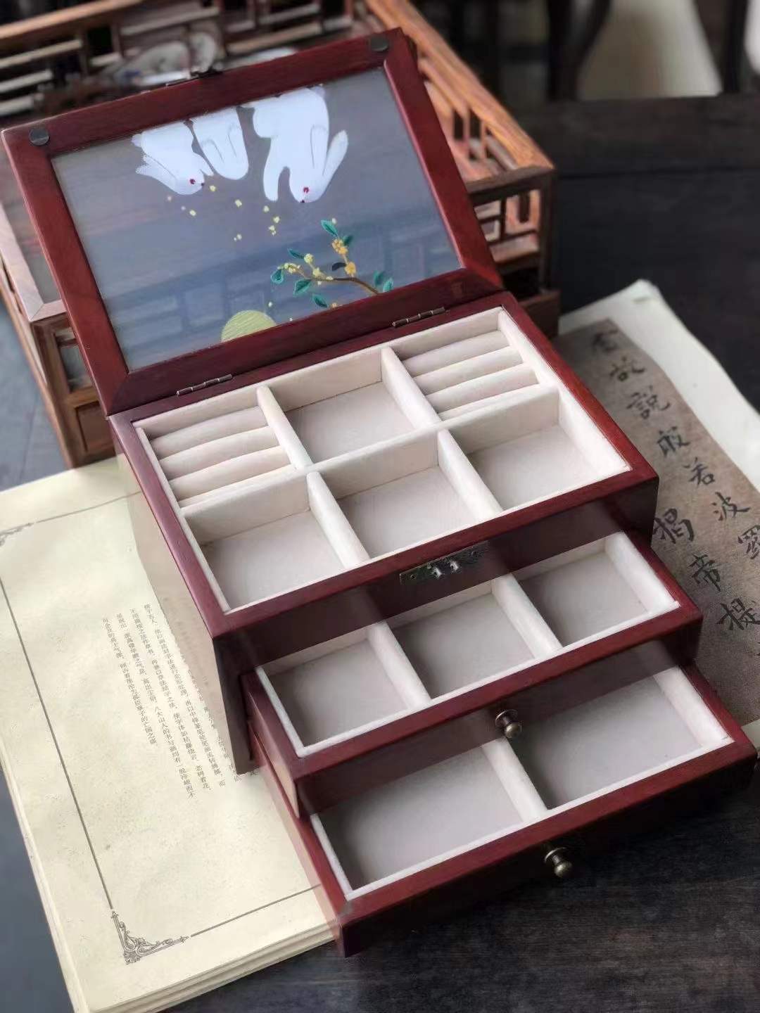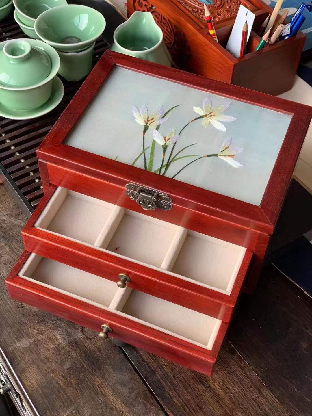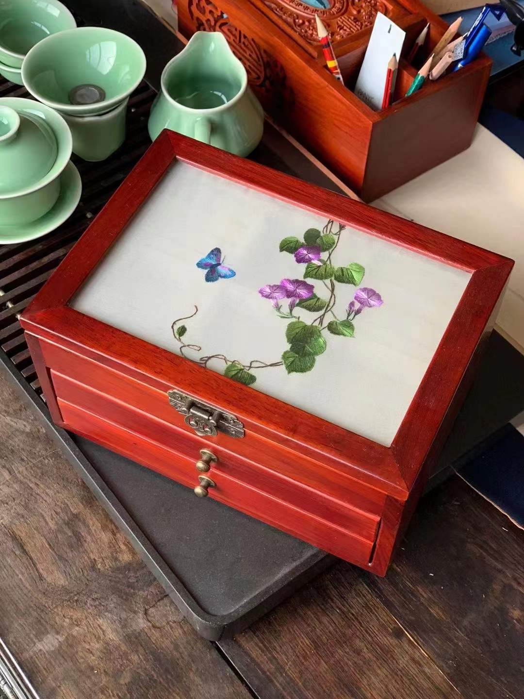 Suzhou embroidery double-sided embroidery mahogany solid wood handicraft jewelry box wedding gift to go abroad to send foreigners to learn from me