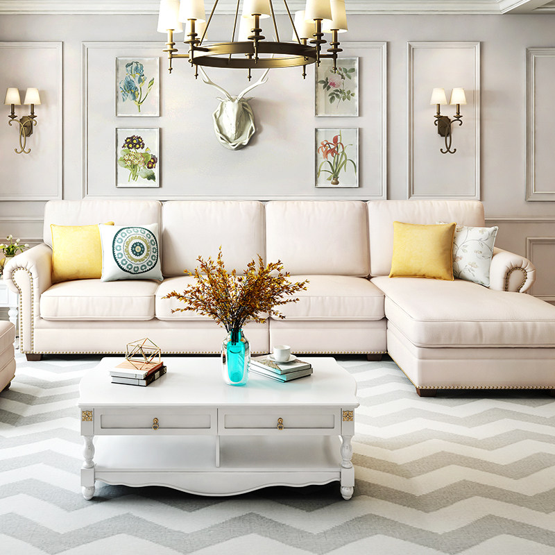 American sofa small apartment fabric sofa combination living room solid wood sofa complete modern minimalist bedroom small sofa