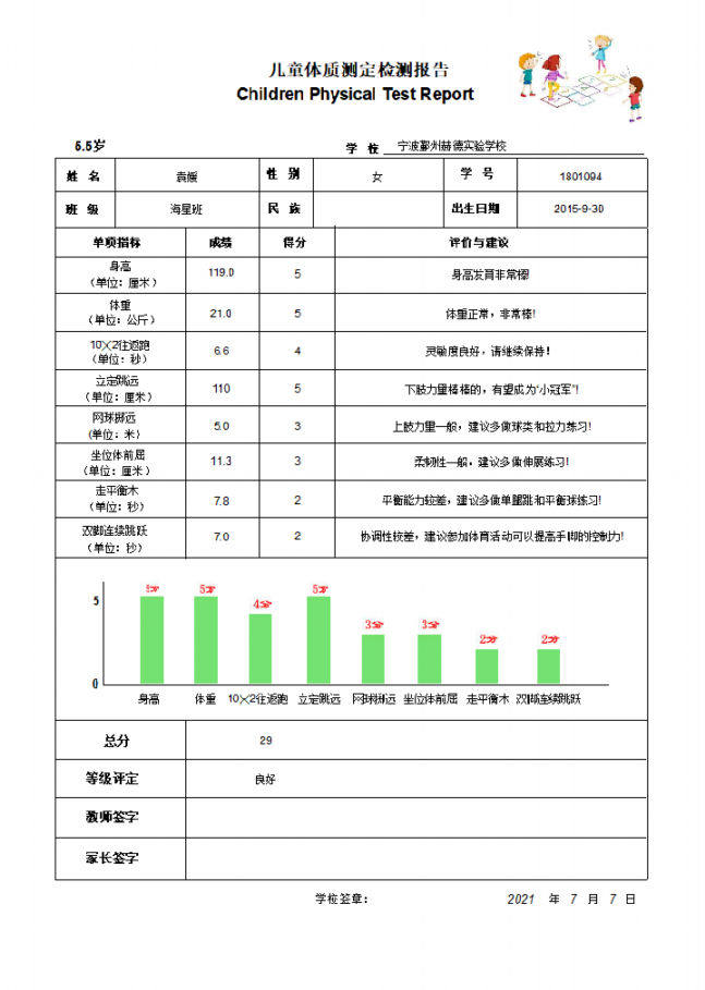 Somei Physical health test management software Kindergarten edition (physical test report) 3-6 years old