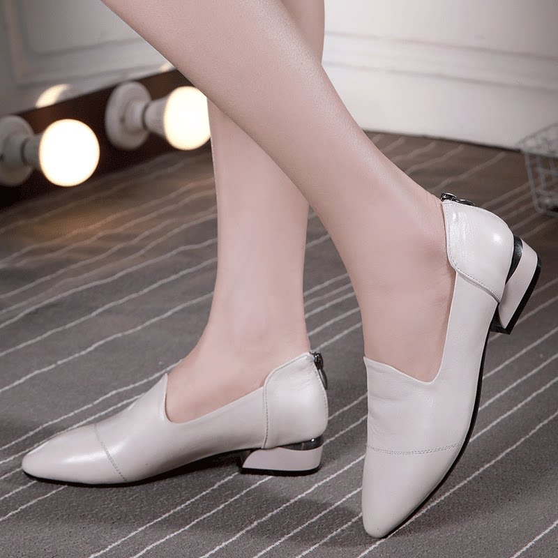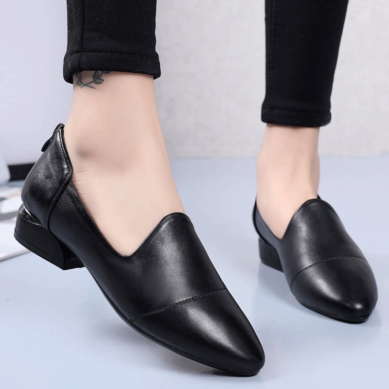 2021 new leather four-season shoes flat simple large size women's shoes 41-43 autumn a pedal soft leather single shoes women