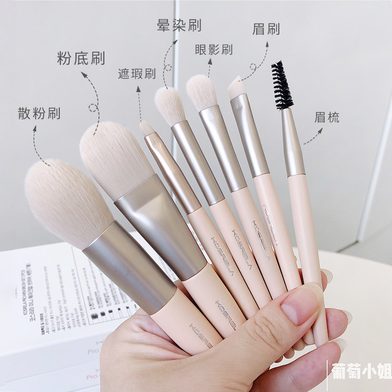 Set of Korean Kos Cosrela kosrela macaron mini makeup brush 7 pieces of suit trickles