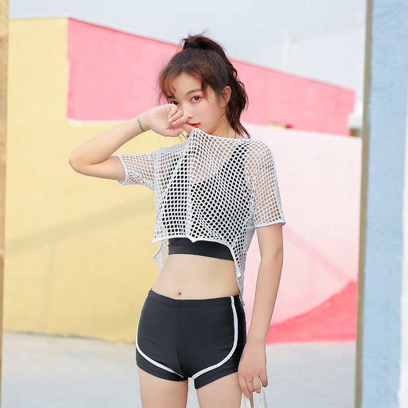 Swimsuit Women's two-piece three sets of conservative display slim cover South Korean student sports spa 2021 new with sleeves