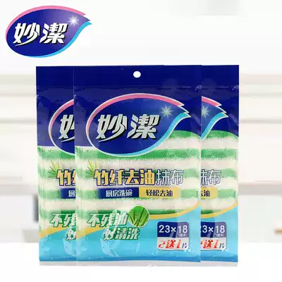Miaojie bamboo fiber degreasing rag Kitchen easy degreasing Anti-oil absorbent non-stick oil dishwashing cloth