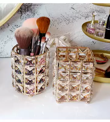 European-style crystal makeup brush storage tube Golden brush bucket Beauty brush storage bucket Home comb eyebrow pencil finishing box