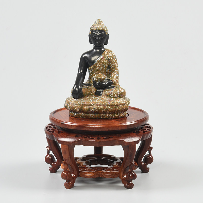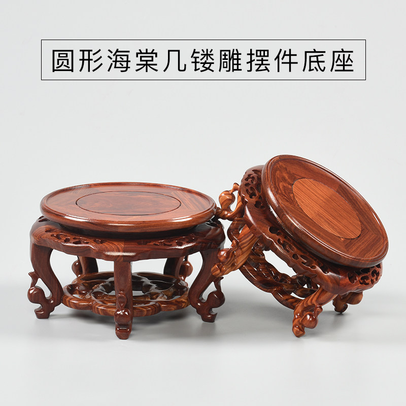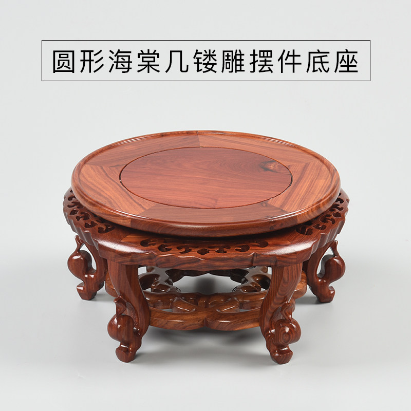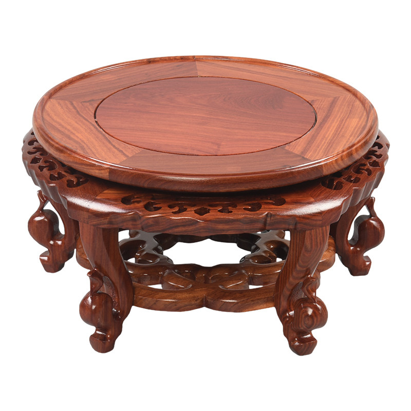 Vase base red sandalwood round carved wooden tub base basin base of Buddha statue base solid wood craft gift decoration