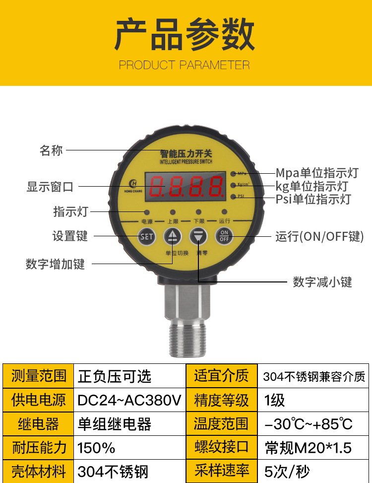 Intelligent pressure meter digital display pressure meter digital electronic vacuum electric junction pump negative pressure water pressure switch controller