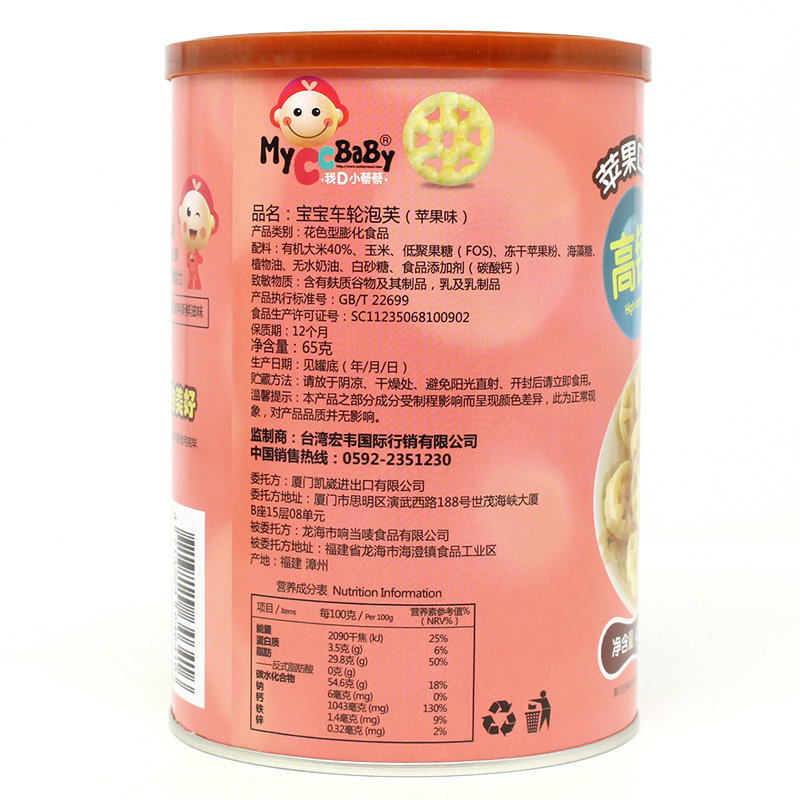 My Xiao Cai Cai Wheel Puffs Organic Rice Children's High Calcium Apple Flavor 65g Delivery Mouth Candy