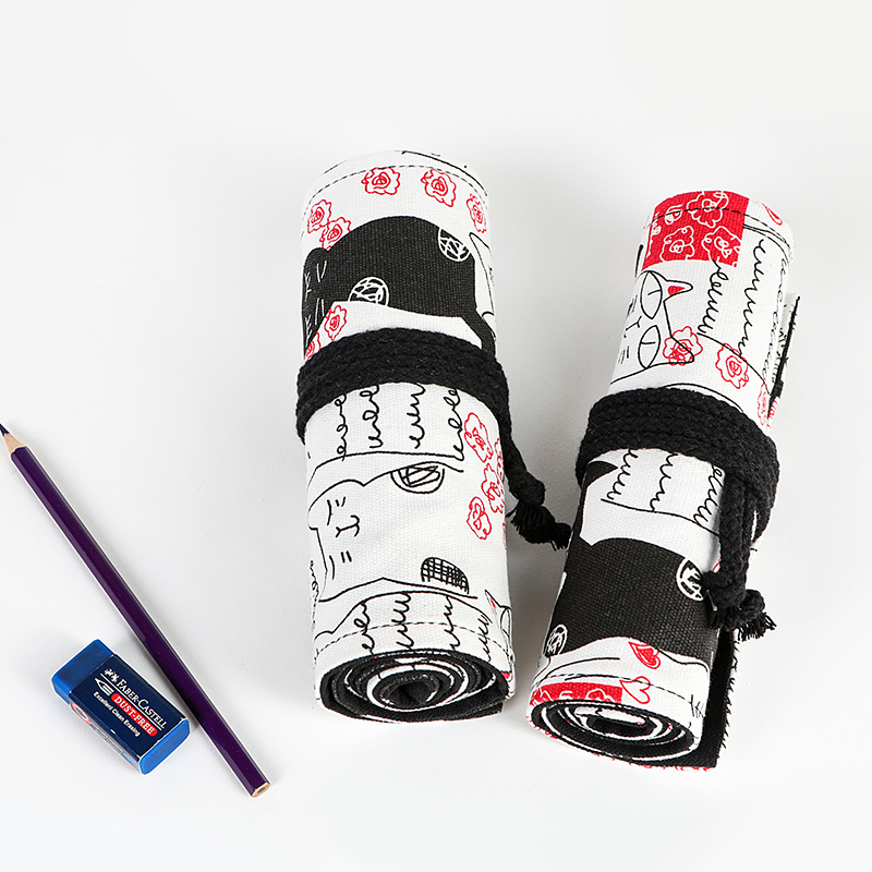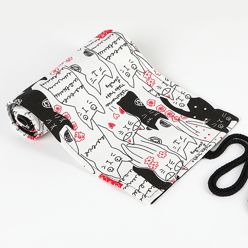 (Limited) Couple Cat Canvas Pen Curtain Large-capacity Pencil Pouch Boys and Girls Colored Pencil Sketch Storage Stationery Bag