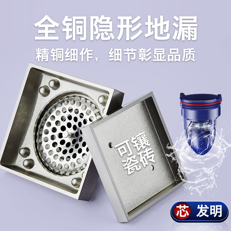 ten thousand Kang maglev concealed floor drain shower room inlaid tile square invisible full copper deodorant shower dressing room