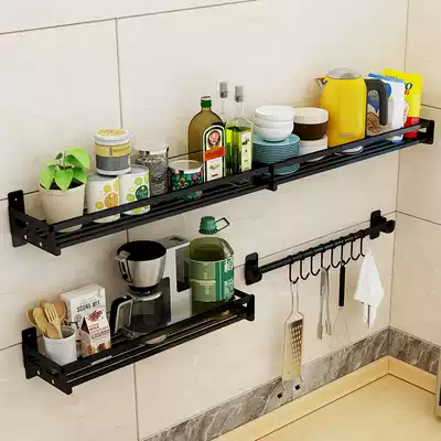 Yu Tang no punched kitchen shelf stainless steel black Wall Wall finishing rack seasoning storage shelf