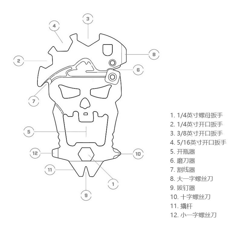 Skull Multifunctional Combination Tool Card QingGear Combination EDC Keychain Multi-purpose Outdoor Light Equipment