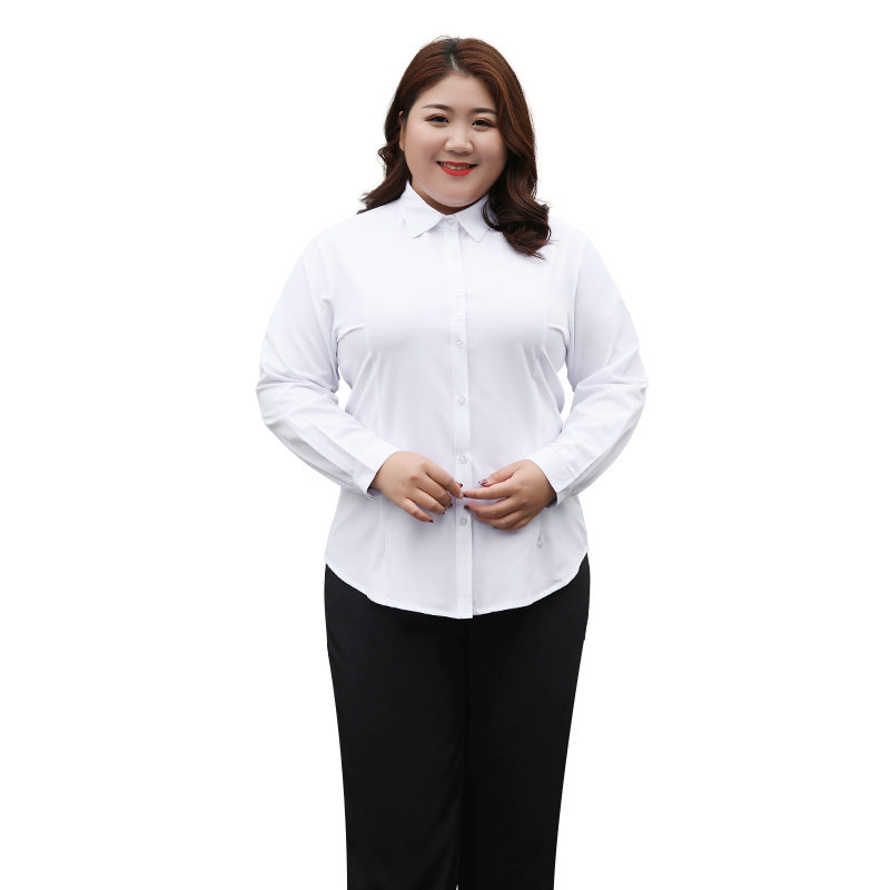 Elastic iron-free long-sleeved large size white shirt women's fat mm formal shirt plus fertilizer to increase work clothes 200 catties