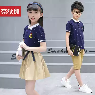 Primary school school uniform Summer suit Men's and women's short-sleeved fashion two-piece graduation suit class suit Kindergarten garden suit