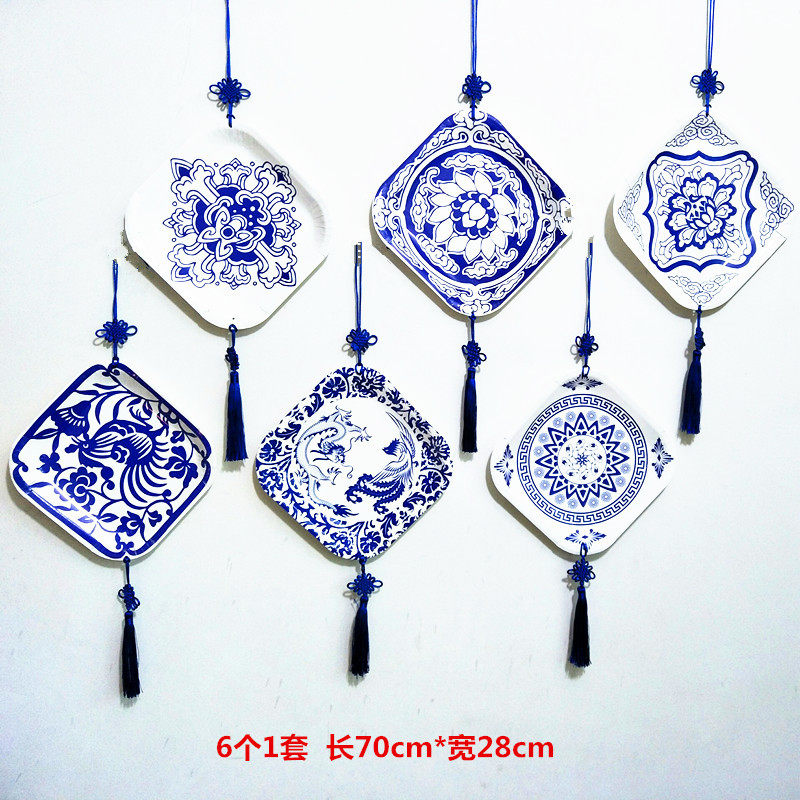 Kindergarten primary school classroom decoration blue and white porcelain paper plate National style retro air charm Chinese romantic Su hanging decoration