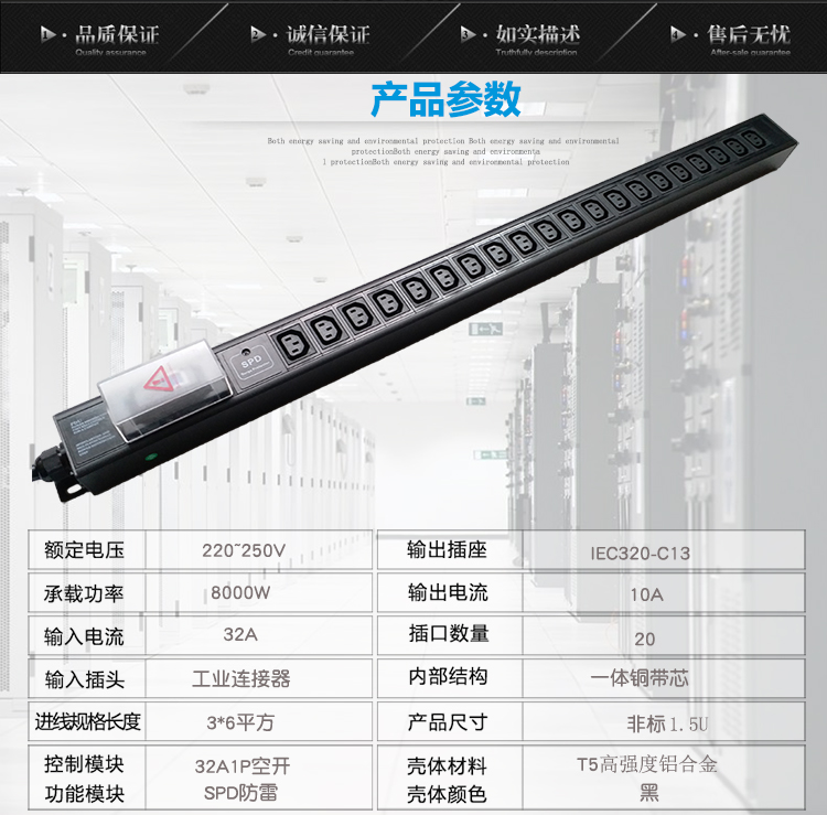 Ming hire PDU cabinet special power outlet air open lightning protection 32A high-power plug extension line 20 C13 holes