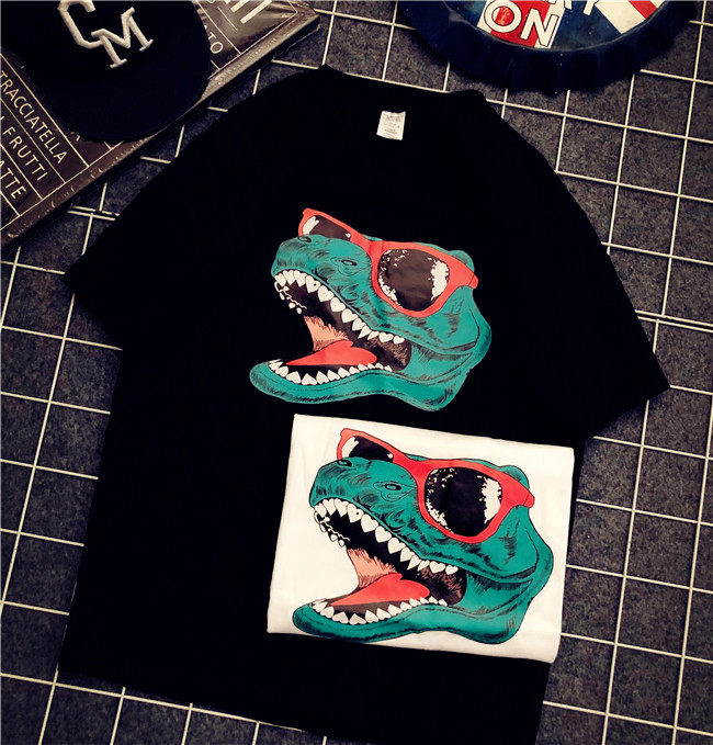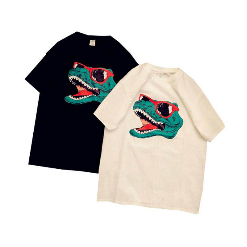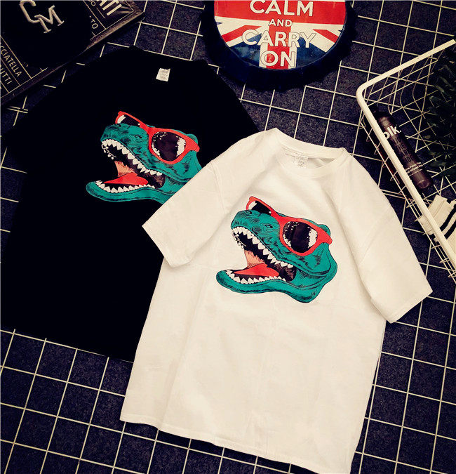 Hong Kong Chaos spring and summer new ins short sleeve T-shirt female pure cotton dinosaur Korean version blouse with large size and half sleeve mistress