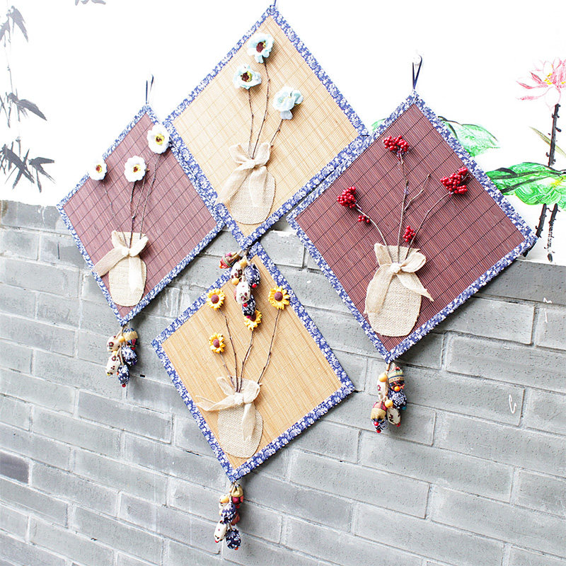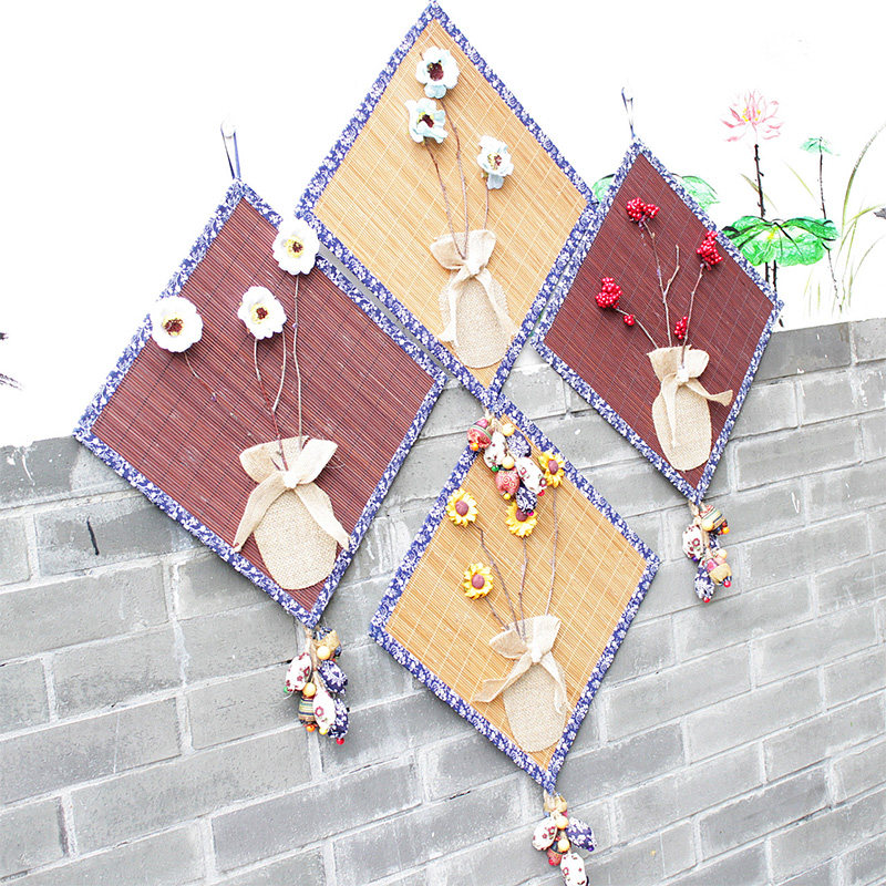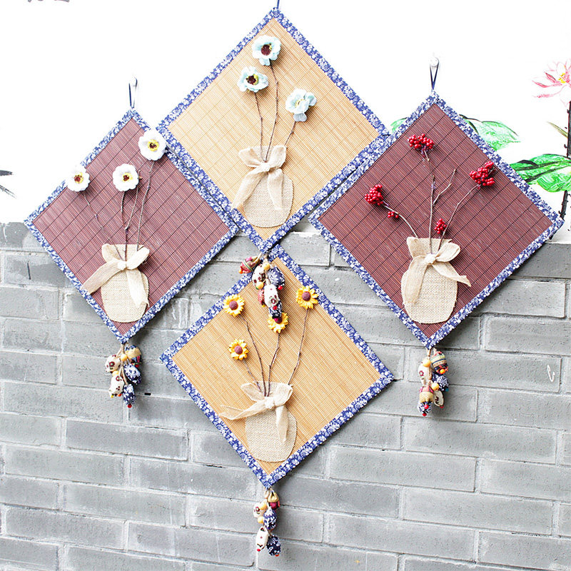 Kindergarten Chinese wind ring to create qinghua porcelain wrapped bamboo curtain hanging linen bow vase creative aerial pendant
