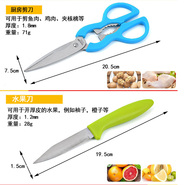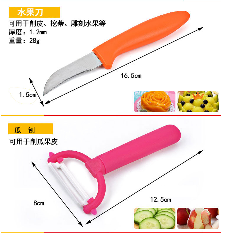 Kitchen multifunction small tool suit Stainless Steel Scissors Sharpened Leather Knife Water Fruit Knife Small Bending Knife Melon Planing Five Pieces