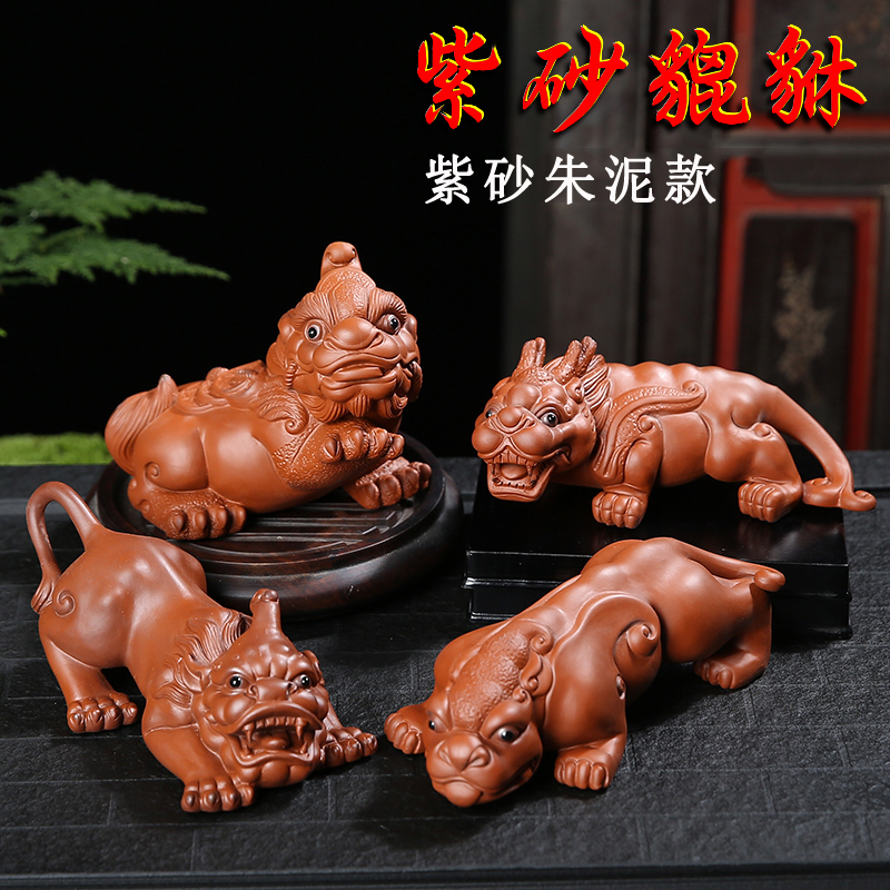 Zisha Piqiu tea pet tea play and drink tea can be raised tea set tea table encounters water discoloration tea pet small ornaments to attract wealth Pixiu