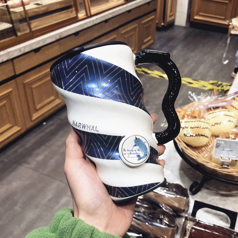 Creative blue series large capacity mug ceramic coffee cup with lid spoon Korean version of the female student household drinking cup