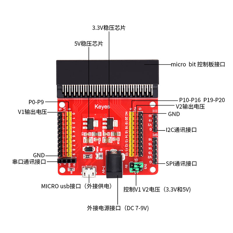 KEYES microbit Sensor Expansion Board V2 compatible with 3 3V 5V Python programming development modules