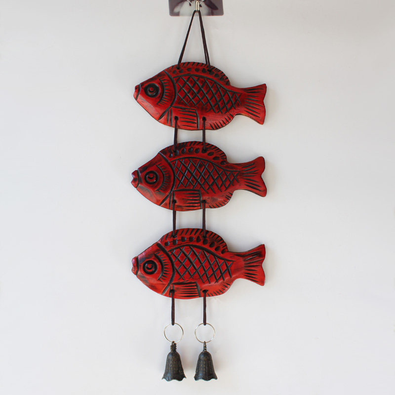 Cute Tropical Fish Wooden Home Decoration Aisle Decoration Wall Decoration Wall Decoration Craft Gift Hem bell Bronze Wind Bell Small Pendant