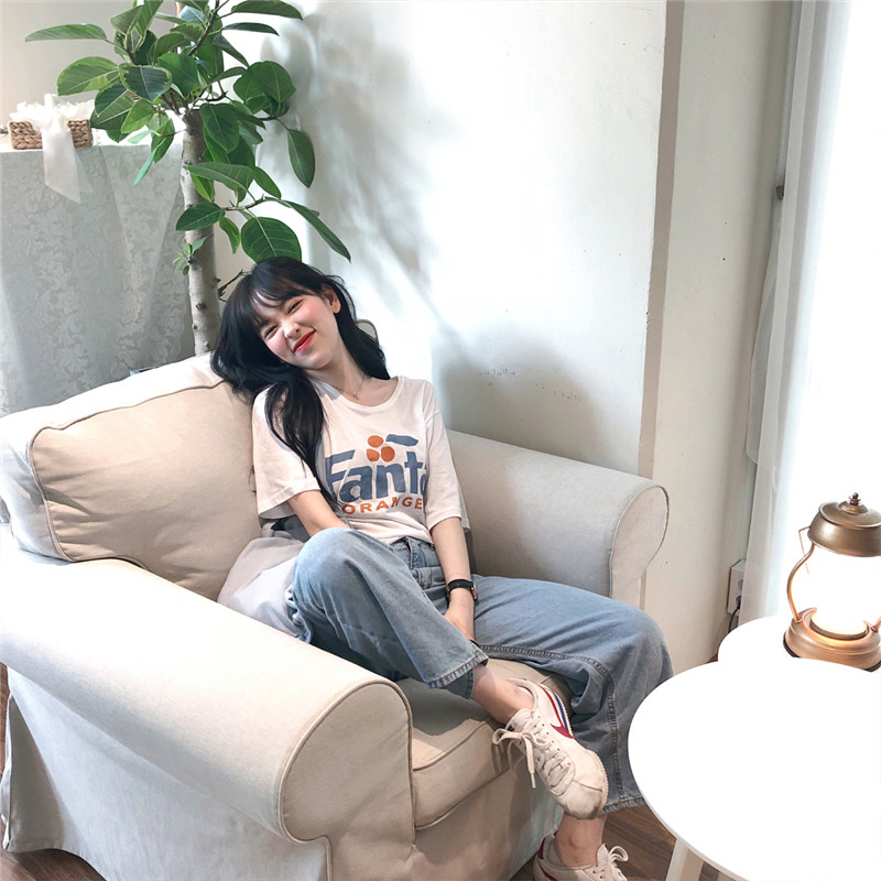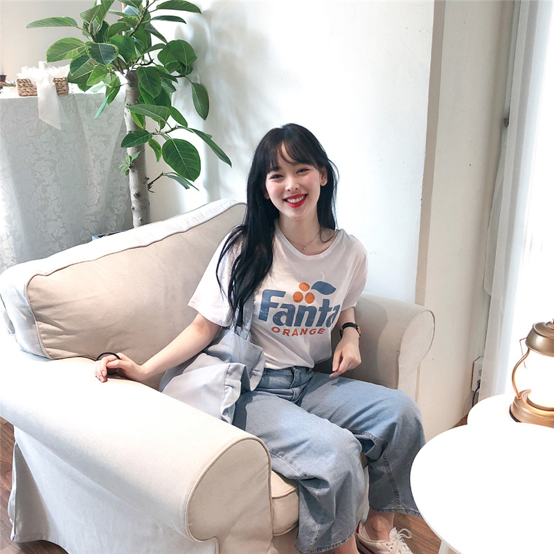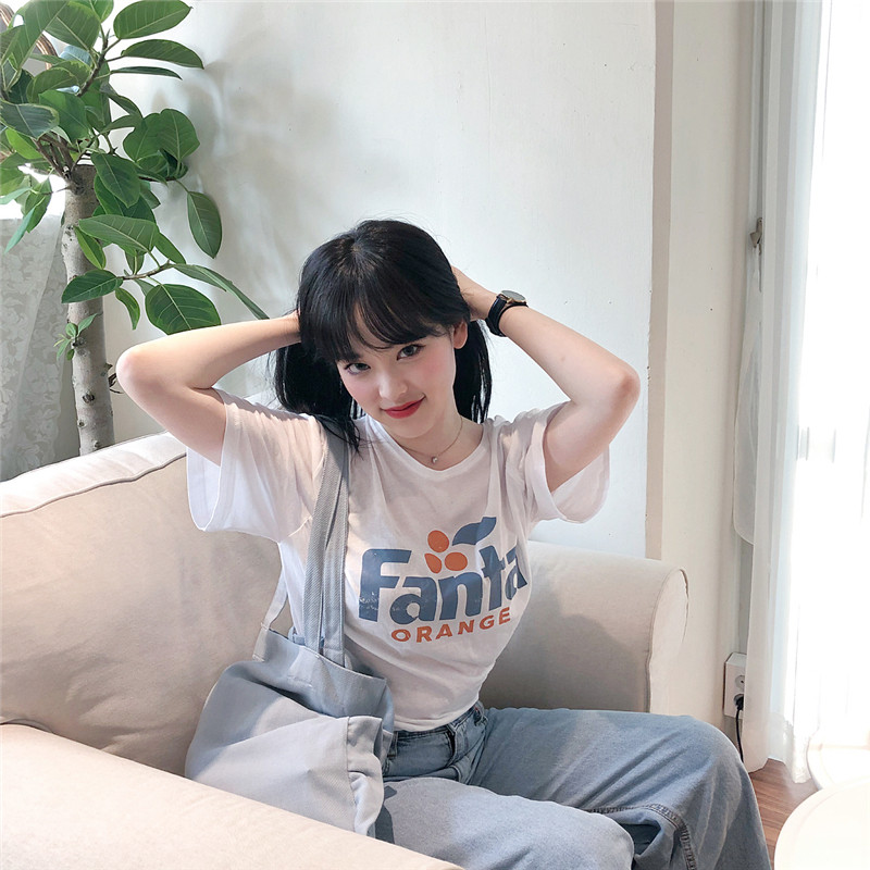 2022 summer new Korean version summer small fresh and sweet letter printing loose short-sleeved T-shirt top girl ins