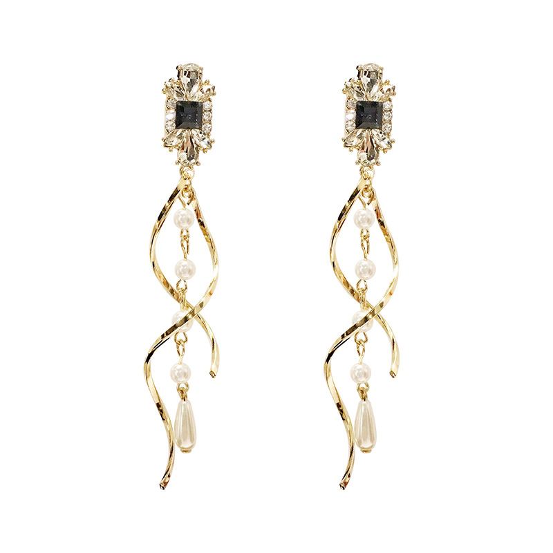 2019 New Silver Needle long version Crystal Pearl earrings female Korean version personality pendant earrings Net red ear jewelry