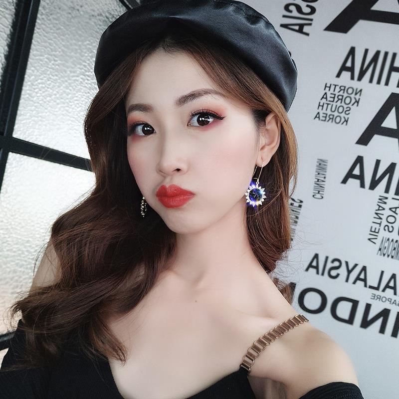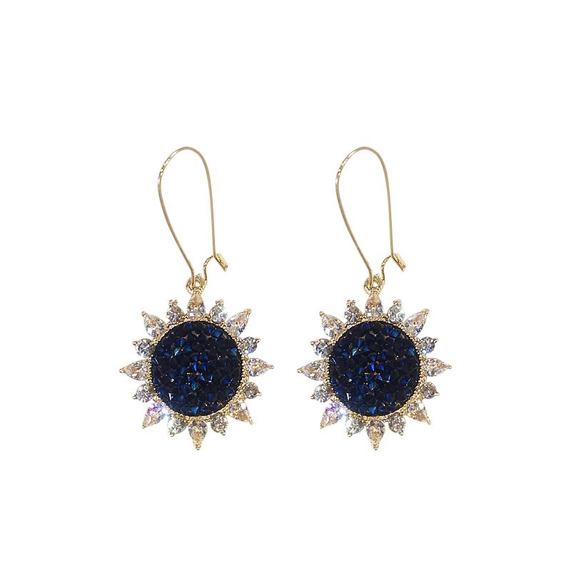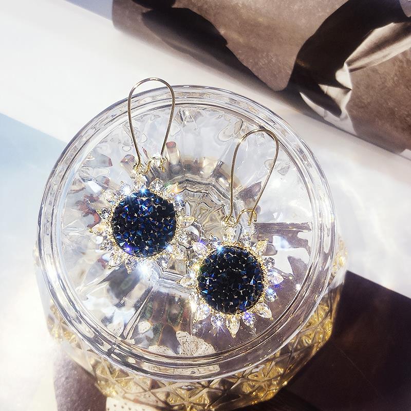 Personality cold wind retro long version sunflower diamond earrings female temperament Korean personality all-match earrings ear pins