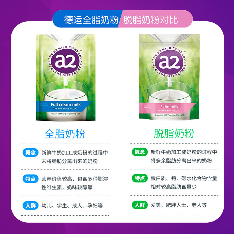 Australia direct mail a2 adult whole milk powder children students pregnant women skim middle-aged and elderly high calcium instant milk powder 1kg