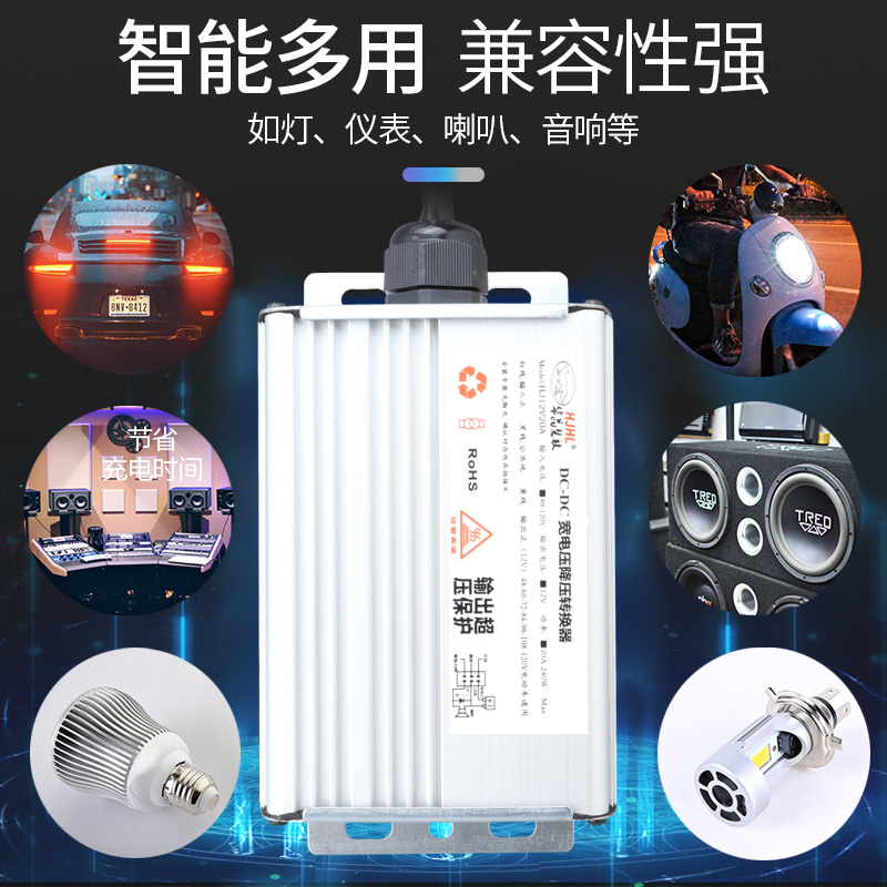 Universal electric vehicle converter 7296120V to 12V20A wide voltage DC xenon lamp whistle horn modification