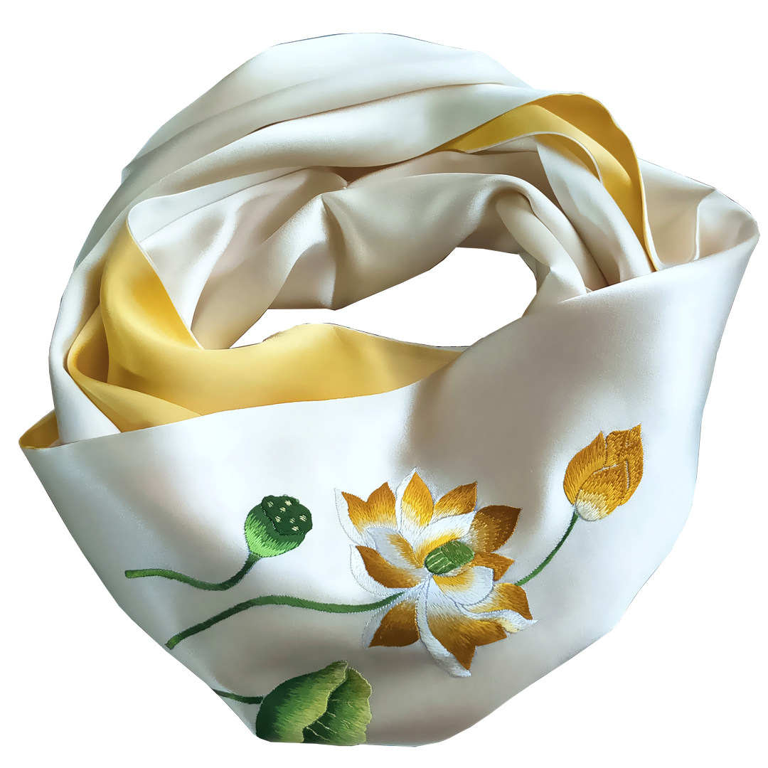 Su embroidery high-end hand embroidery silk scarf Lotus embroidery Mulberry silk scarf double-sided Hangzhou silk shawl