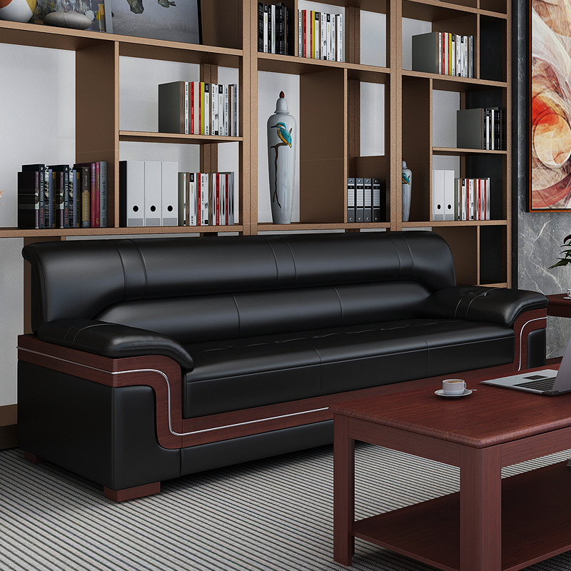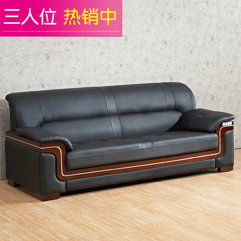 Guangzhou Brief Sofa Business Genuine Leather Guest Sofa Tea Table Composition 3 People Three-person Office Sofa Reception room