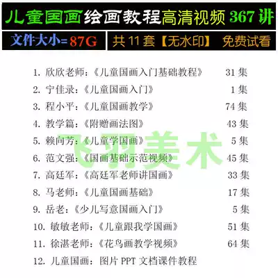 Children's painting traditional Chinese painting Zero Foundation advanced self-study flowers and birds landscape teaching HD film 11 sets 369 Talk 67g