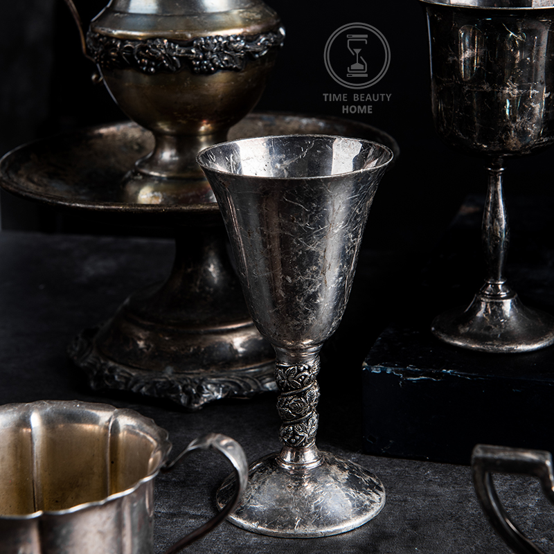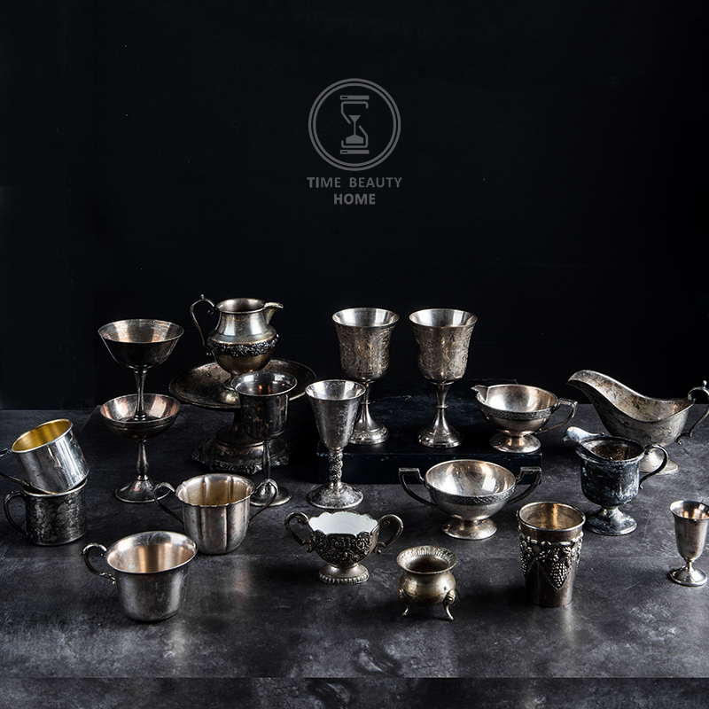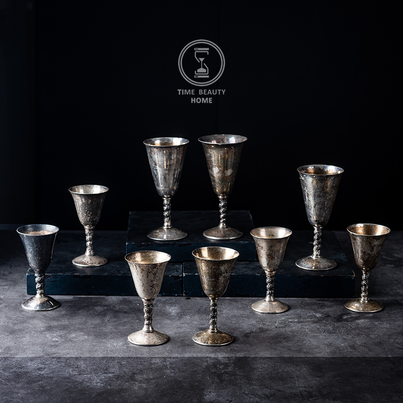 7 9 on the new European antique vintage VINTAGE silver-plated kettle water cup photography props decoration decoration soft decoration
