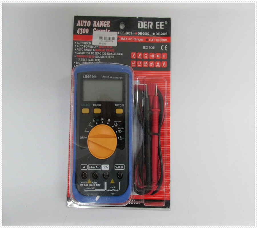 New Taiwan DEREE benefit DE-2002 digital multimeter universal meter universal meter with electricity meter DE2002