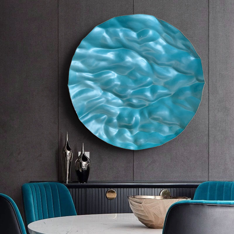 Prototype Room Hotel Living Room Sofa Background Wall Hidden Cyan Modern Minima Wave Art Wall Decoration