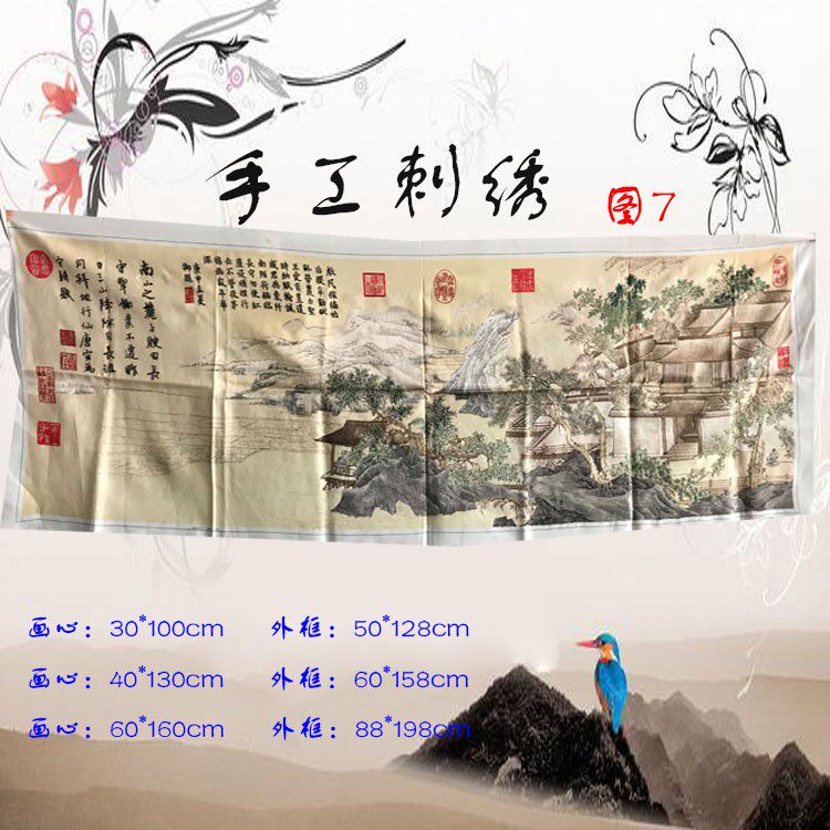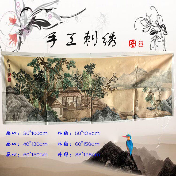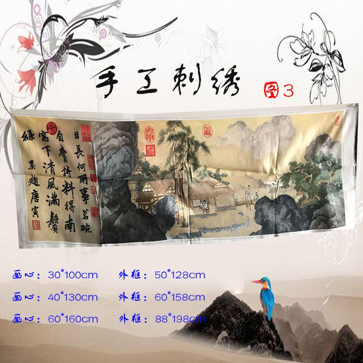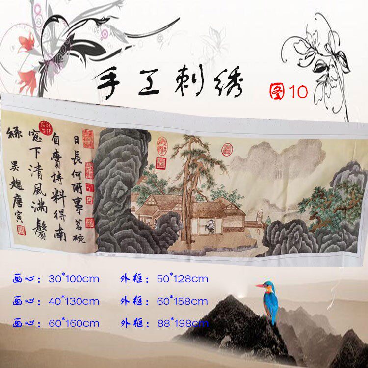 Hand-embroidered hanging painting Finished Chinese painting embroidery piece Chinese style ancient text landscape single-sided embroidery office decoration painting customization