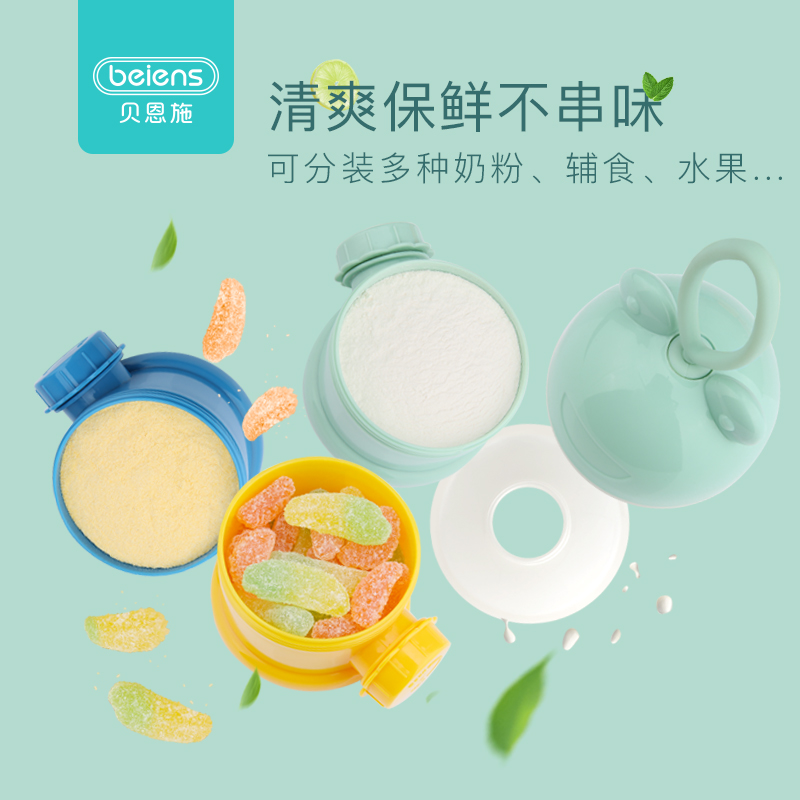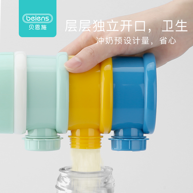 Bainshi dispensing milk powder box storage portable out-of-home baby milk powder grid sealed large capacity independent opening three layers