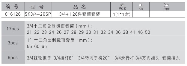 Jieke JETECH Metric Sleeve Set 20mm Series 26 Piece Set SK3 4-26SP