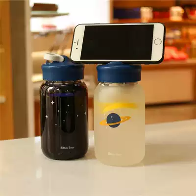 Simple starry sky glass female personality student forest water cup Portable Korean cup creative matte trend water bottle