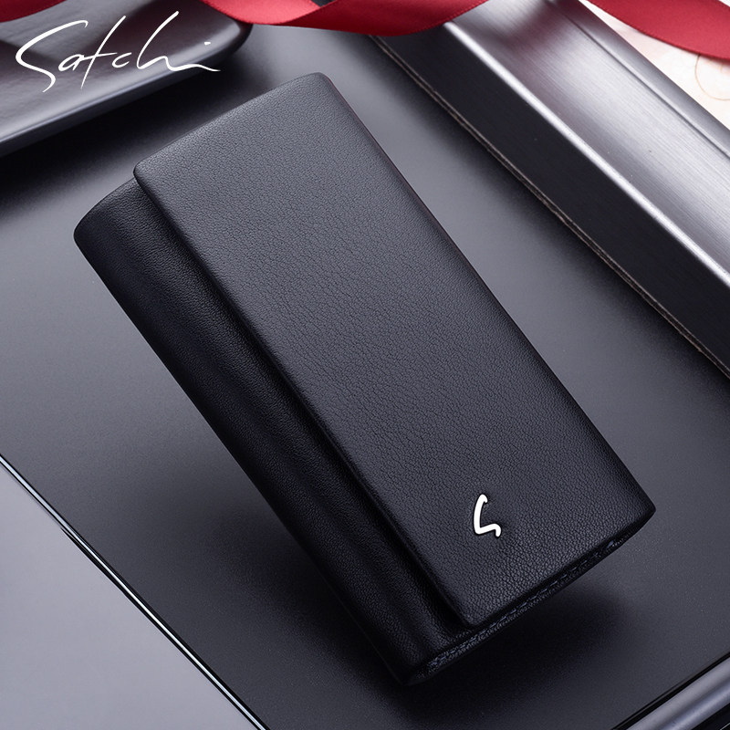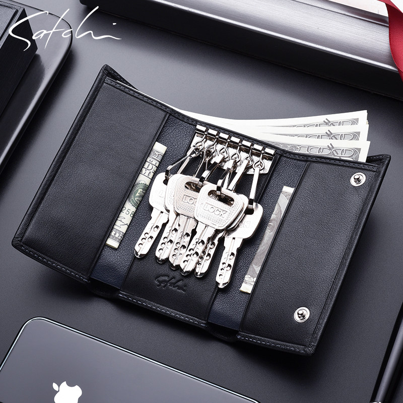 Sha Chi key bag Men's leather coin purse multi-function card bag Simple cowhide buckle key bag unisex