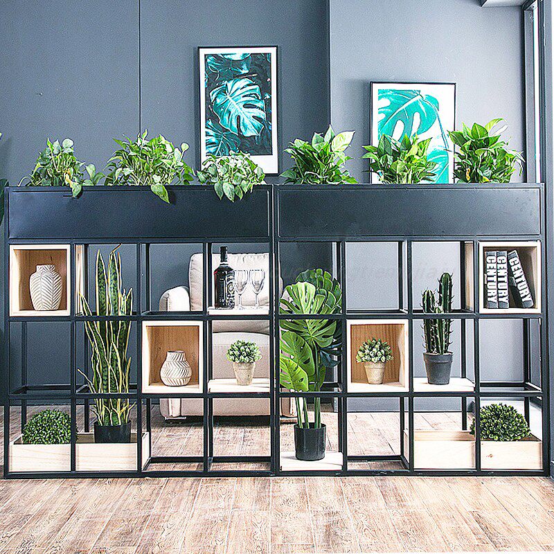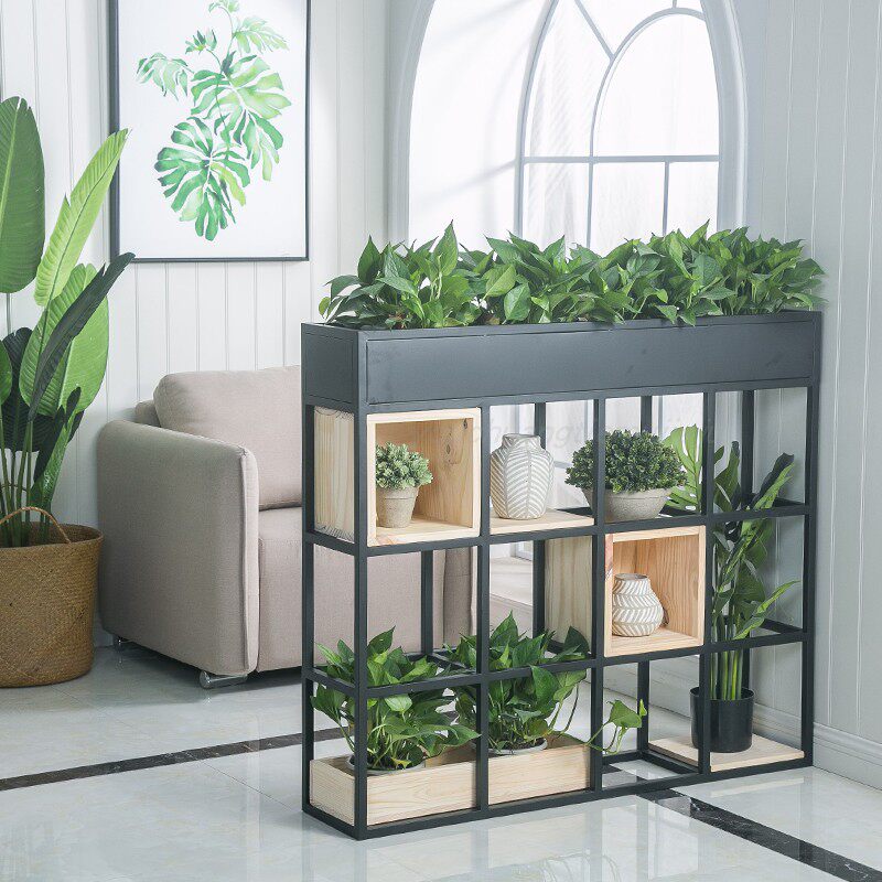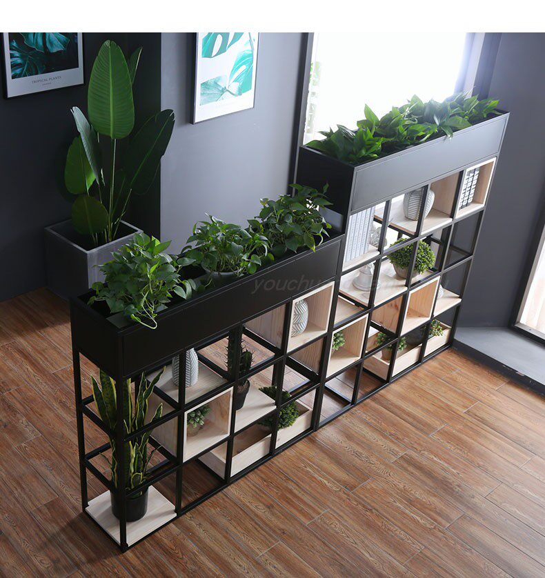 Iron Art Office Partition Shelve Coffee Shop Dining Room Decoration Flower Shelf Floor Green Planting Creative Screen Show Shelf