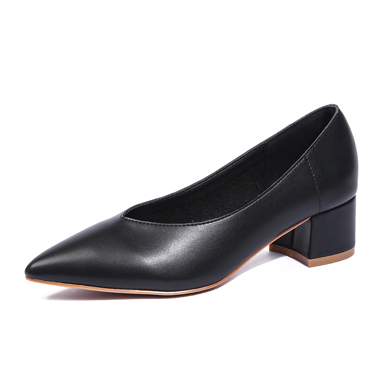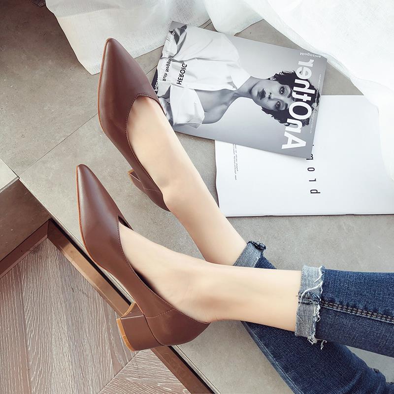 Tide brand 2022 spring new pointed toe retro middle-heeled grandma shoes comfortable thick-heeled leather low-heeled shallow mouth single shoes women