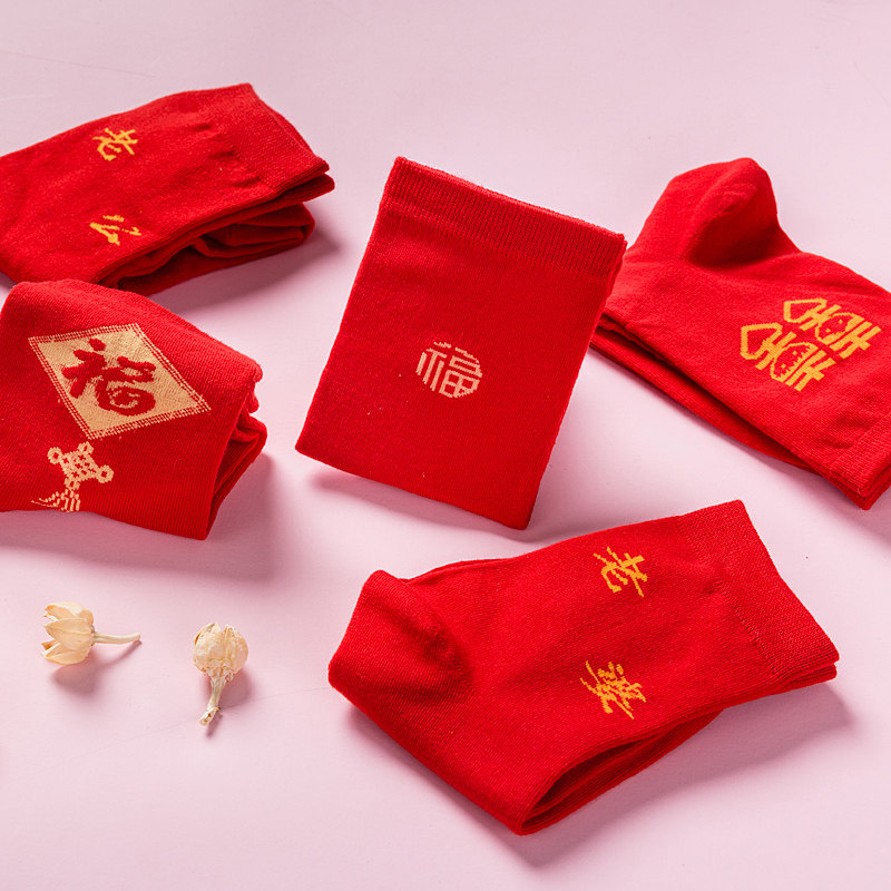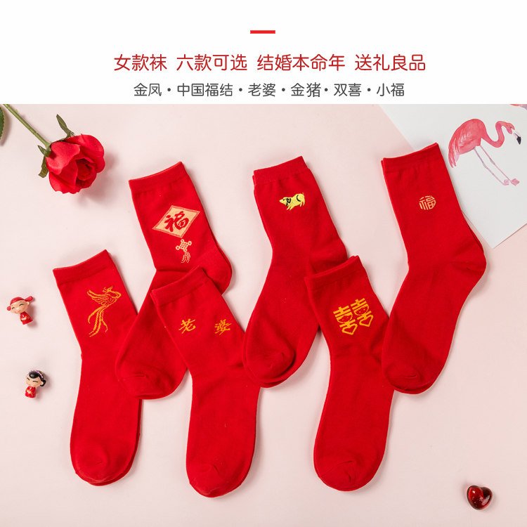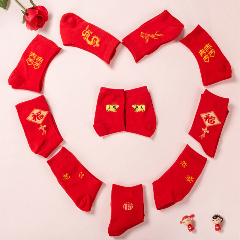 This Life Year Male Lady Midbarrel Red Stockings Couple Wedding Pure Cotton Jacquard Gold Pig Deodorant Sucking Short Socks