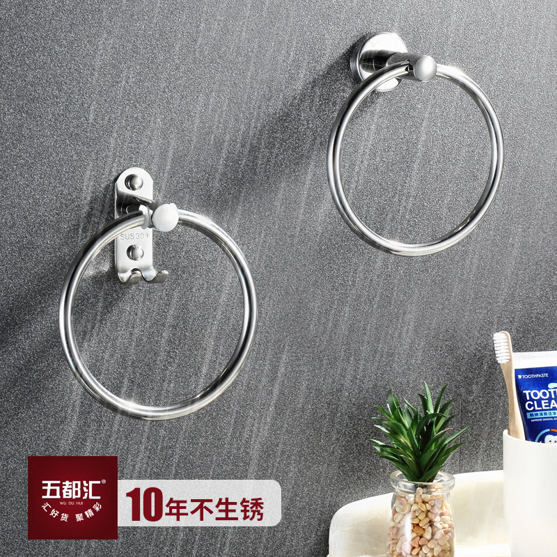 304 stainless steel towel ring free punching bathroom hanging towel ring hanging towel ring towel rack wall hanging toilet