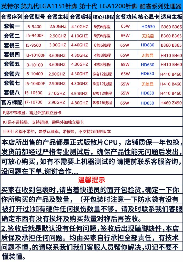 i3 10100 i5 10400 10500 i5 9400 9500 9400F i7 10700 CPU Chip