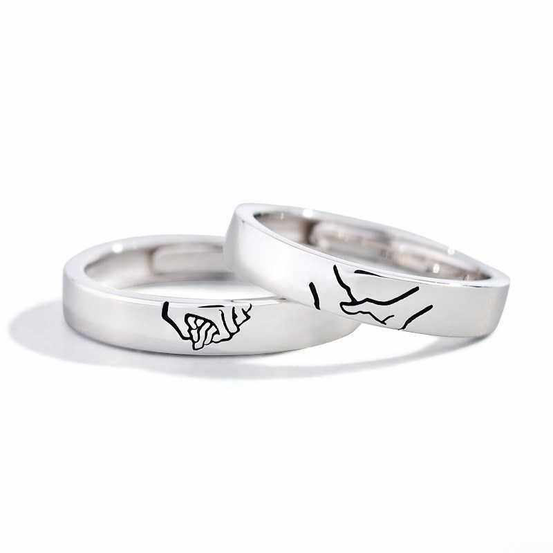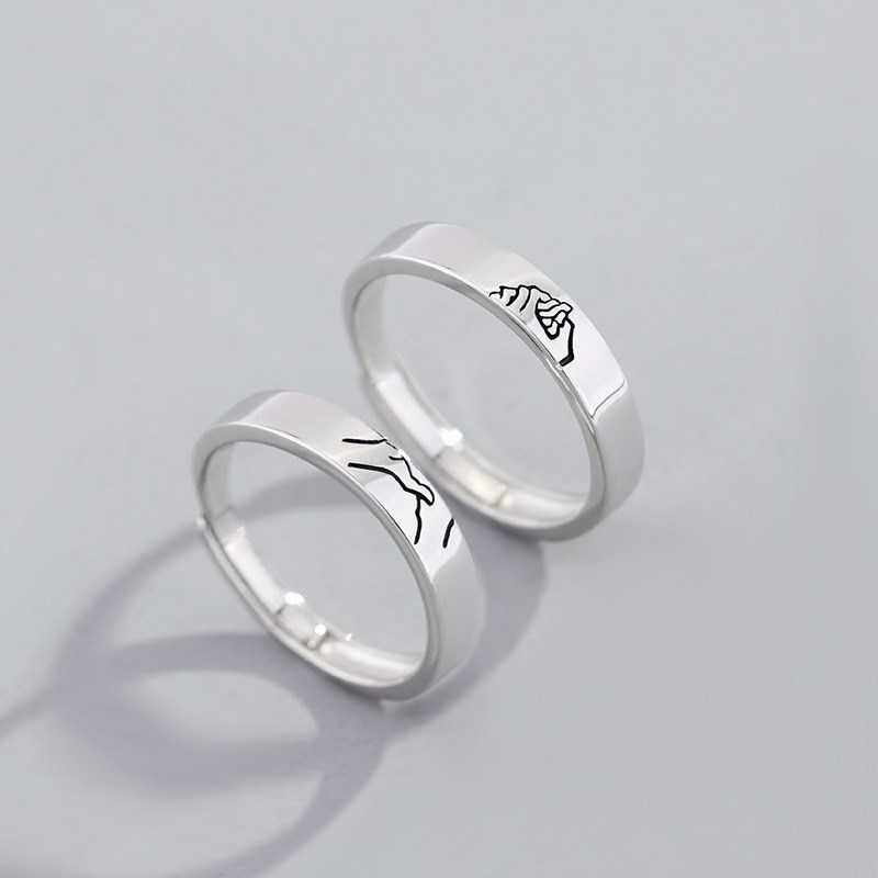 Shen Gia Kee Silver Jewelry S925 Silver Deacon's Hand Lovers Ring Creativity to the ring Korea-Japanese men and women opening up fashion new